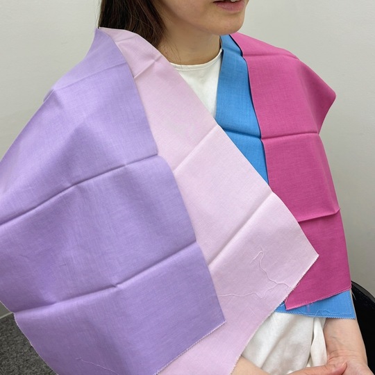 青みが強い色と彩度の高い色はお顔が青ざめたりきつく見えたりする事がわかりました。