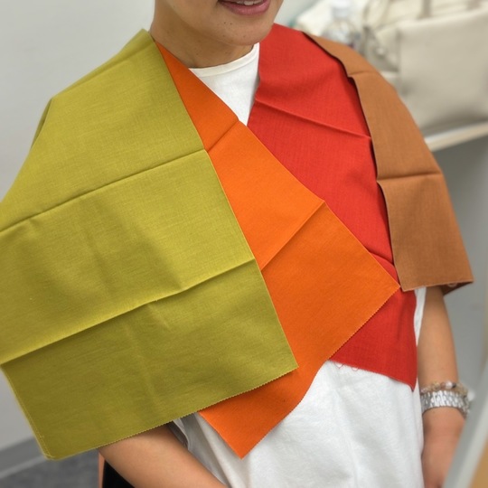 の中でも似合うお色の幅はおありなので、差し色に少し楽しまれても素敵だと思います。(ベストカラーにはその要素を少し盛り込みました)