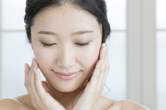 チークカラーは淡いラベンダーピンクを淡く入れると、本来の肌の血色と合わさってハイライト効果もあり